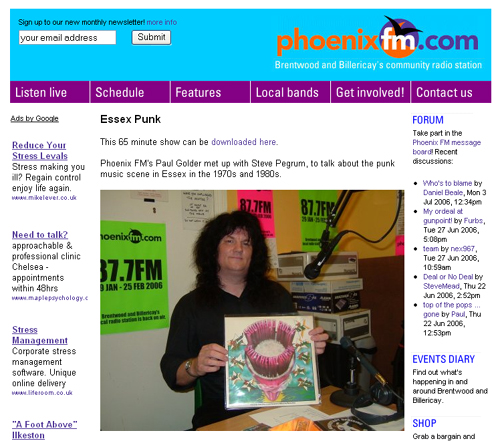 On Friday June 30th Steve Pegrum did a 65 minute show on Phoenix FM (Brentwood