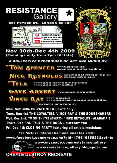 a specific night, please e-mail resistancegallery@yahoo.co.uk Put 'tickets